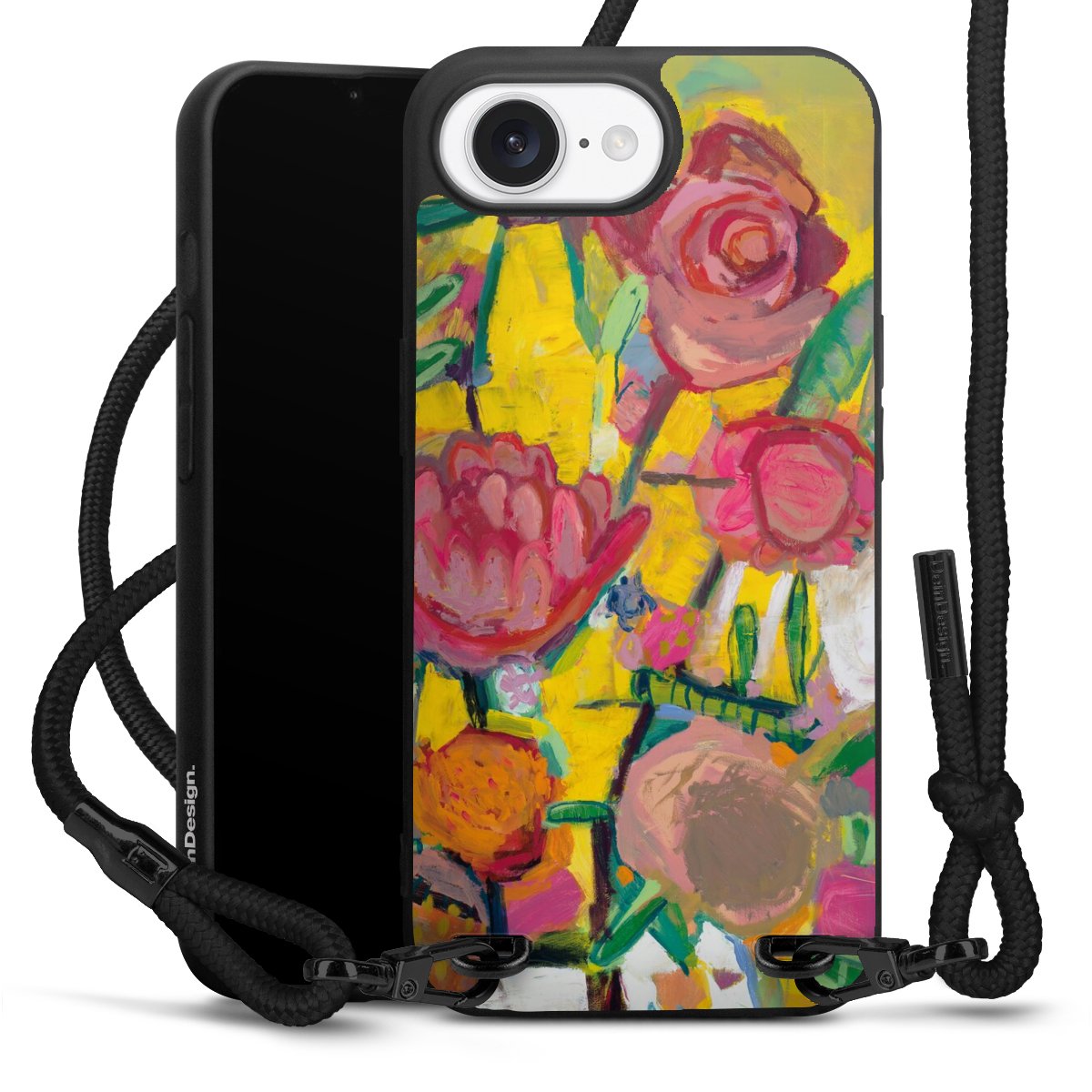 We use the solid direct print process for this phone case, which is why the print area only covers the back and the edge remains unprinted. The case to wear around your neck can be ordered unprinted, fully printed, or partially printed. For your design, either choose one of our exclusive shop motifs or get creative and create your own design, for example with photos and overlays. Design your own personal trend accessory and make an individual statement on the streets!