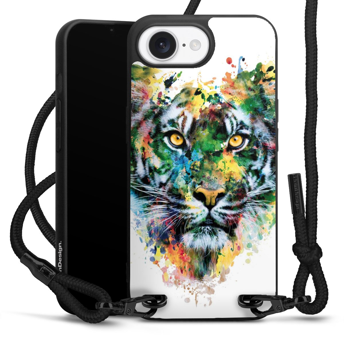 We use the solid direct print process for this phone case, which is why the print area only covers the back and the edge remains unprinted. The case to wear around your neck can be ordered unprinted, fully printed, or partially printed. For your design, either choose one of our exclusive shop motifs or get creative and create your own design, for example with photos and overlays. Design your own personal trend accessory and make an individual statement on the streets!