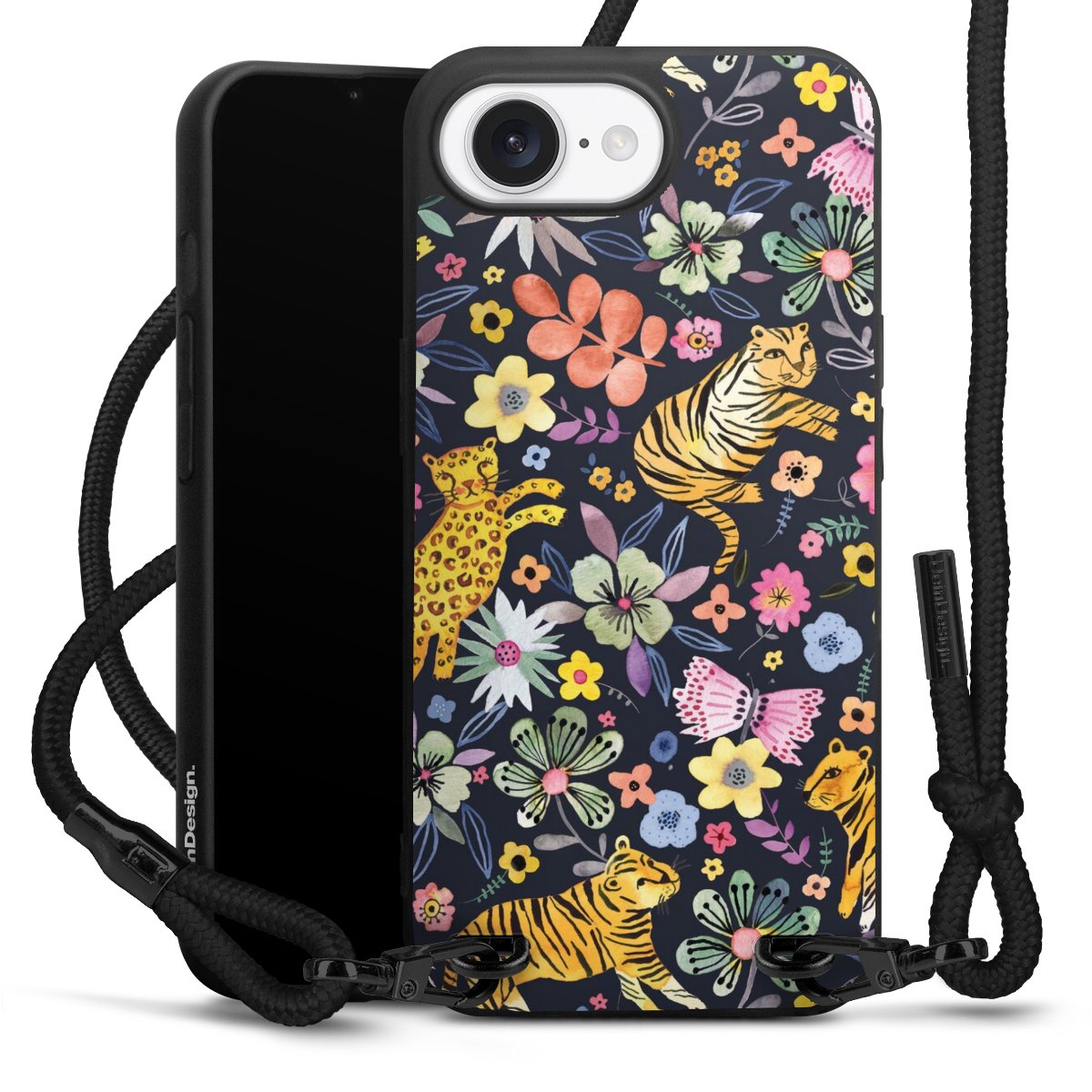 We use the solid direct print process for this phone case, which is why the print area only covers the back and the edge remains unprinted. The case to wear around your neck can be ordered unprinted, fully printed, or partially printed. For your design, either choose one of our exclusive shop motifs or get creative and create your own design, for example with photos and overlays. Design your own personal trend accessory and make an individual statement on the streets!