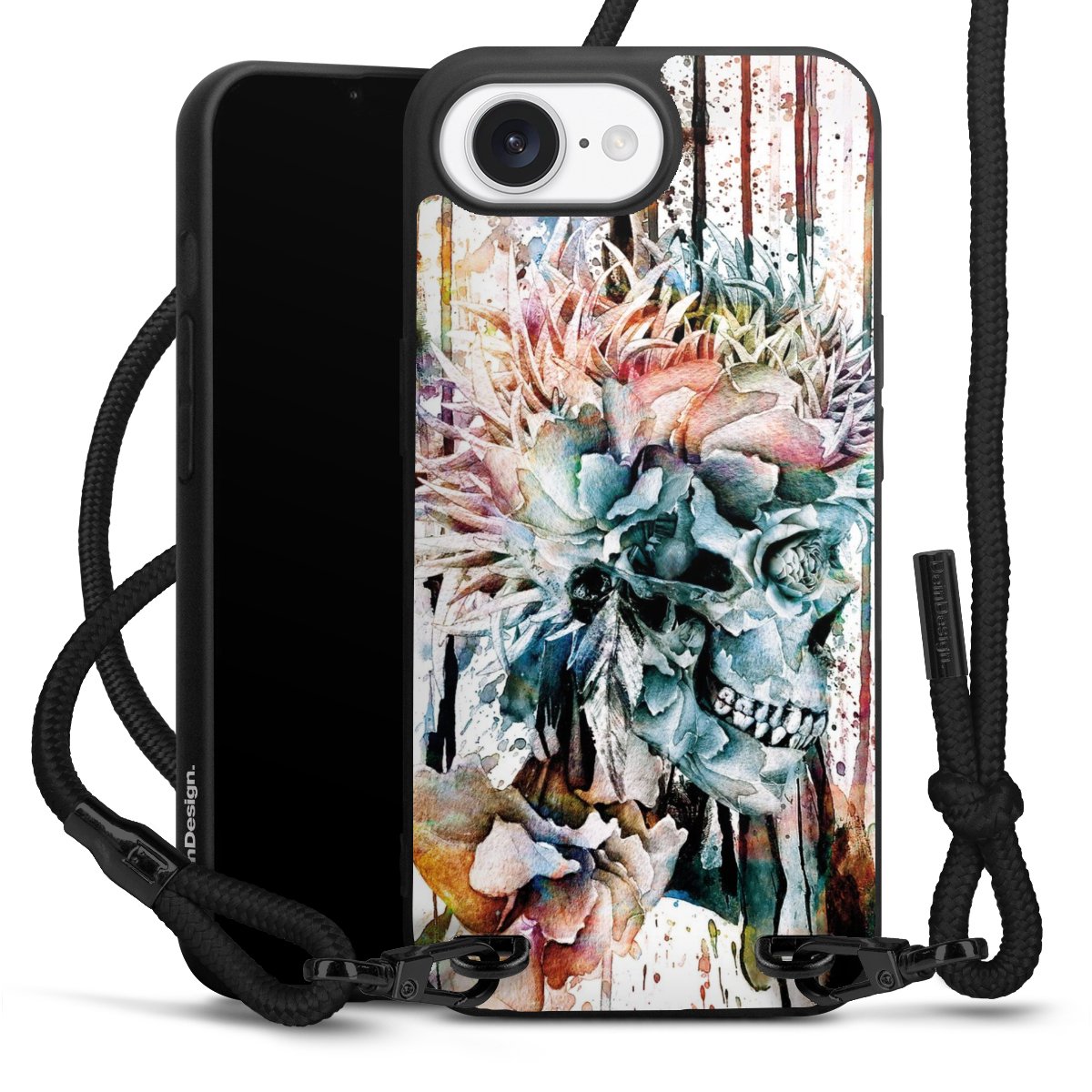 We use the solid direct print process for this phone case, which is why the print area only covers the back and the edge remains unprinted. The case to wear around your neck can be ordered unprinted, fully printed, or partially printed. For your design, either choose one of our exclusive shop motifs or get creative and create your own design, for example with photos and overlays. Design your own personal trend accessory and make an individual statement on the streets!