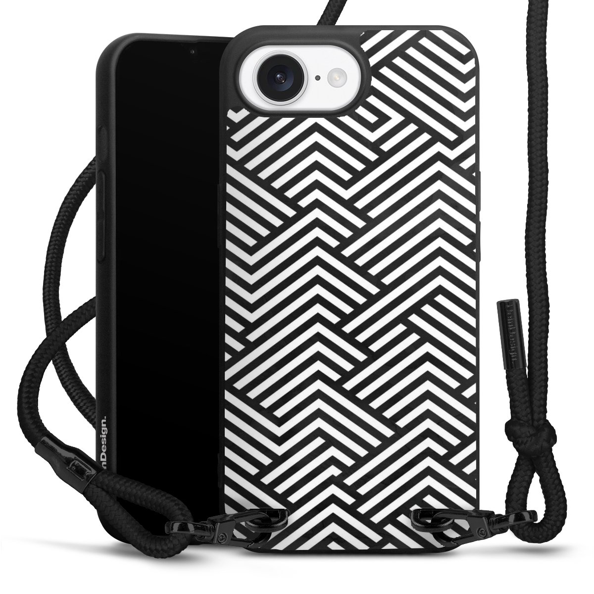 Pure Black: Phone case, fabric strap and metal details in stylish matt black.