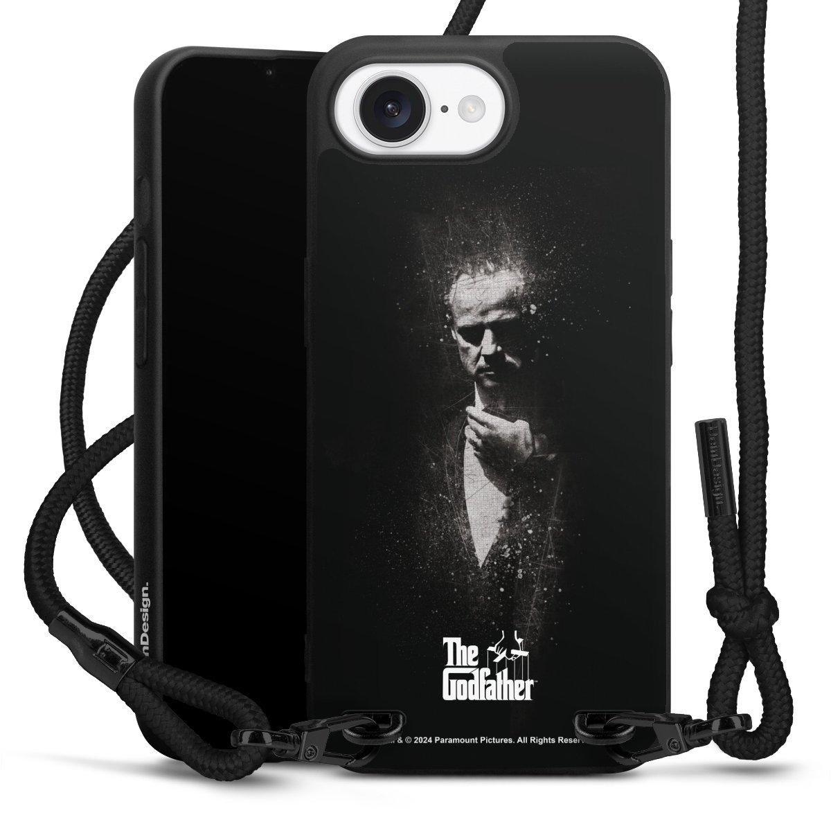 Pure Black: Phone case, fabric strap and metal details in stylish matt black.
