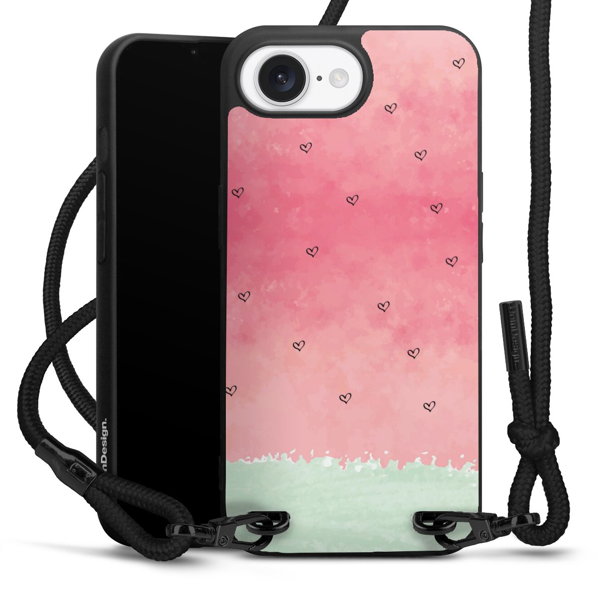 We use the solid direct print process for this phone case, which is why the print area only covers the back and the edge remains unprinted. The case to wear around your neck can be ordered unprinted, fully printed, or partially printed. For your design, either choose one of our exclusive shop motifs or get creative and create your own design, for example with photos and overlays. Design your own personal trend accessory and make an individual statement on the streets!