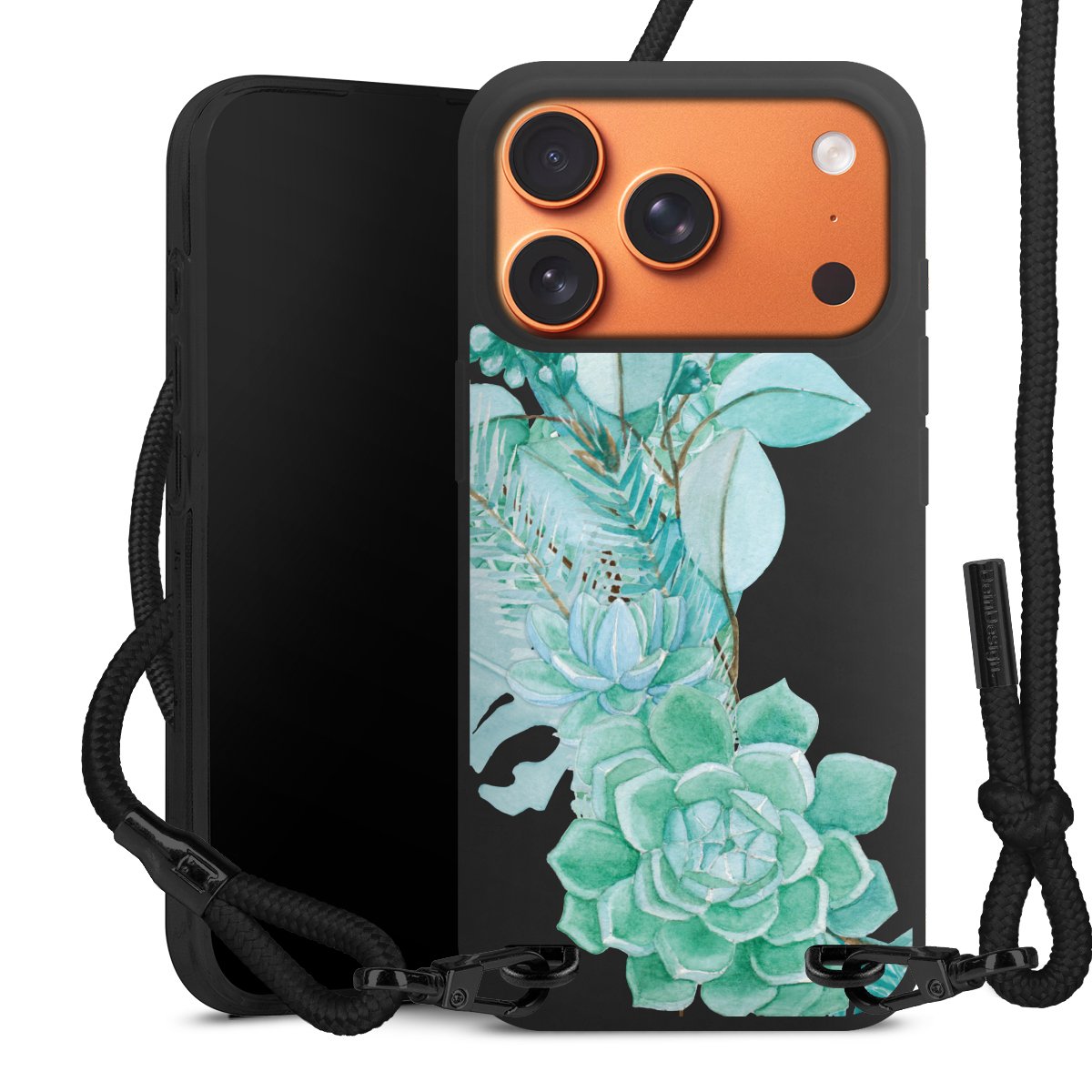 We use the solid direct print process for this phone case, which is why the print area only covers the back and the edge remains unprinted. The case to wear around your neck can be ordered unprinted, fully printed, or partially printed. For your design, either choose one of our exclusive shop motifs or get creative and create your own design, for example with photos and overlays. Design your own personal trend accessory and make an individual statement on the streets!