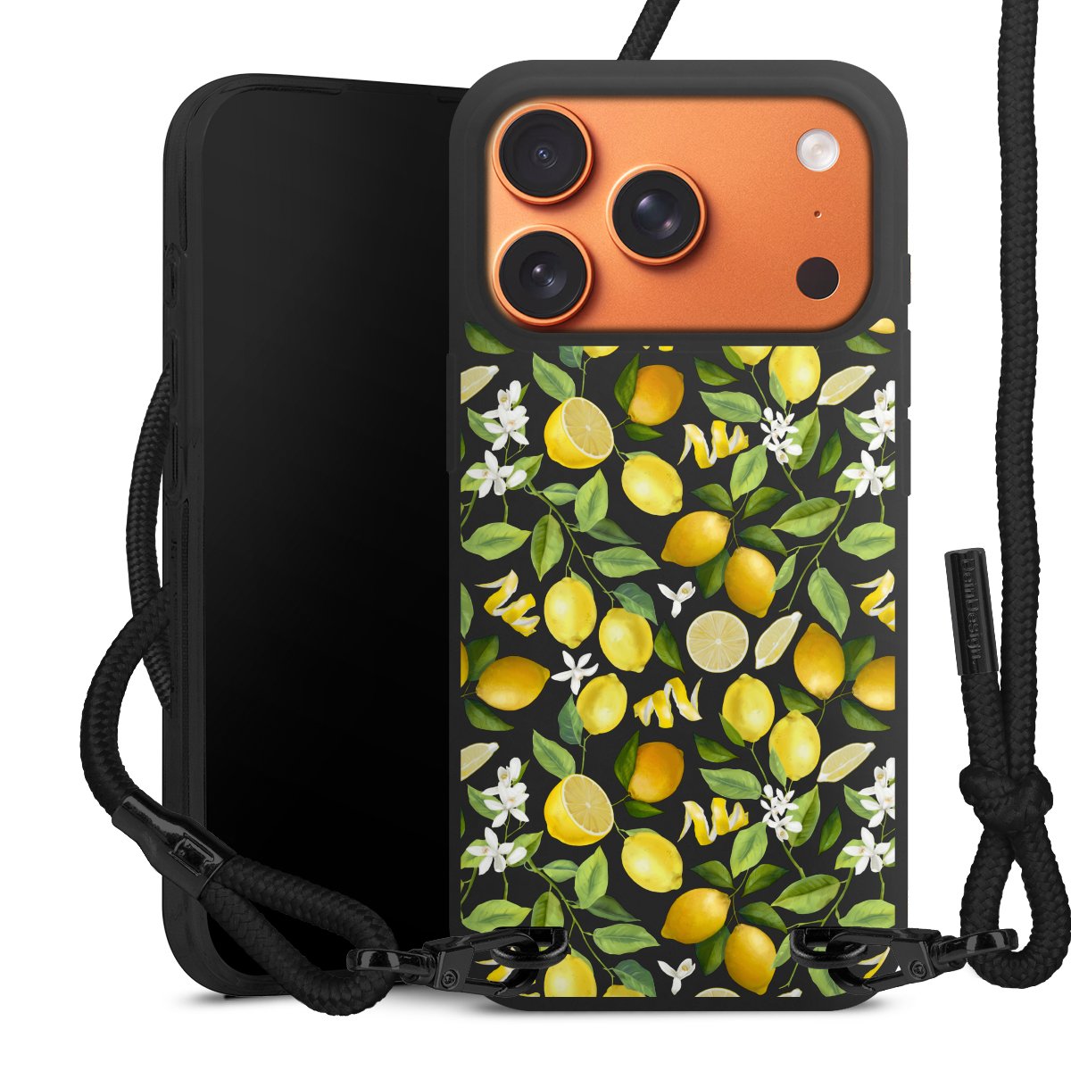 Pure Black: Phone case, fabric strap and metal details in stylish matt black.