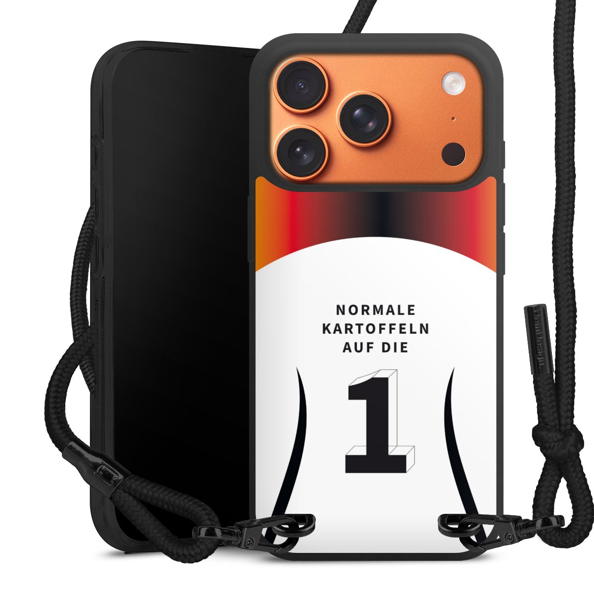 We use the solid direct print process for this phone case, which is why the print area only covers the back and the edge remains unprinted. The case to wear around your neck can be ordered unprinted, fully printed, or partially printed. For your design, either choose one of our exclusive shop motifs or get creative and create your own design, for example with photos and overlays. Design your own personal trend accessory and make an individual statement on the streets!