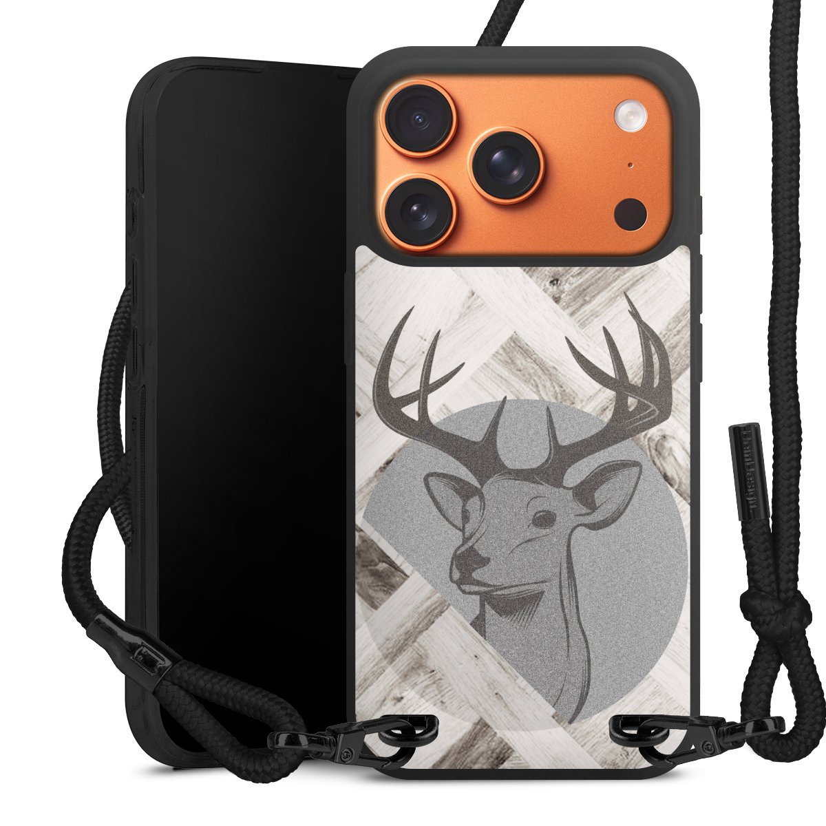 We use the solid direct print process for this phone case, which is why the print area only covers the back and the edge remains unprinted. The case to wear around your neck can be ordered unprinted, fully printed, or partially printed. For your design, either choose one of our exclusive shop motifs or get creative and create your own design, for example with photos and overlays. Design your own personal trend accessory and make an individual statement on the streets!