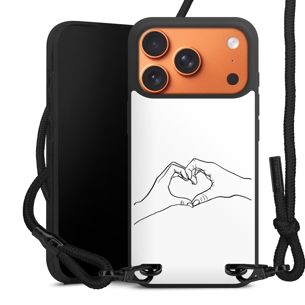 We use the solid direct print process for this phone case, which is why the print area only covers the back and the edge remains unprinted. The case to wear around your neck can be ordered unprinted, fully printed, or partially printed. For your design, either choose one of our exclusive shop motifs or get creative and create your own design, for example with photos and overlays. Design your own personal trend accessory and make an individual statement on the streets!