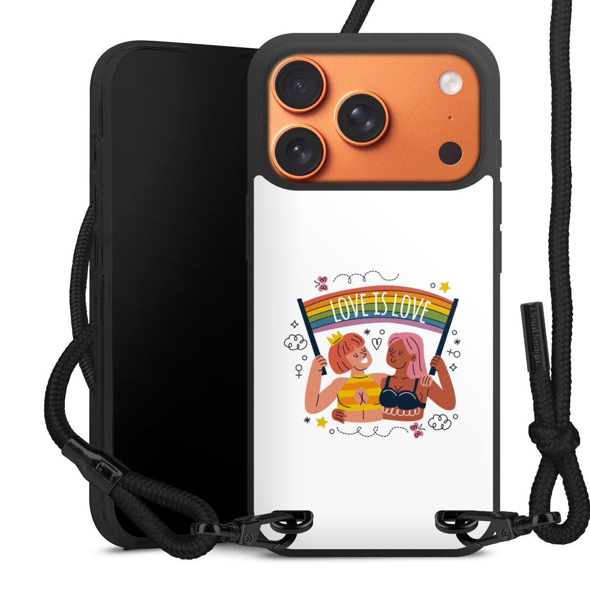 We use the solid direct print process for this phone case, which is why the print area only covers the back and the edge remains unprinted. The case to wear around your neck can be ordered unprinted, fully printed, or partially printed. For your design, either choose one of our exclusive shop motifs or get creative and create your own design, for example with photos and overlays. Design your own personal trend accessory and make an individual statement on the streets!