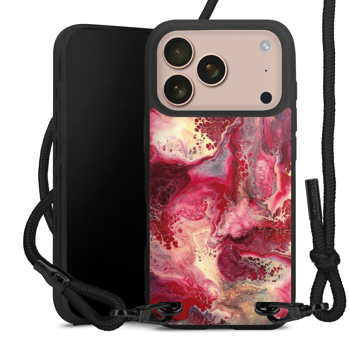 We use the solid direct print process for this phone case, which is why the print area only covers the back and the edge remains unprinted. The case to wear around your neck can be ordered unprinted, fully printed, or partially printed. For your design, either choose one of our exclusive shop motifs or get creative and create your own design, for example with photos and overlays. Design your own personal trend accessory and make an individual statement on the streets!