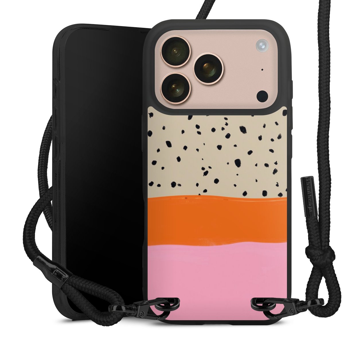 We use the solid direct print process for this phone case, which is why the print area only covers the back and the edge remains unprinted. The case to wear around your neck can be ordered unprinted, fully printed, or partially printed. For your design, either choose one of our exclusive shop motifs or get creative and create your own design, for example with photos and overlays. Design your own personal trend accessory and make an individual statement on the streets!