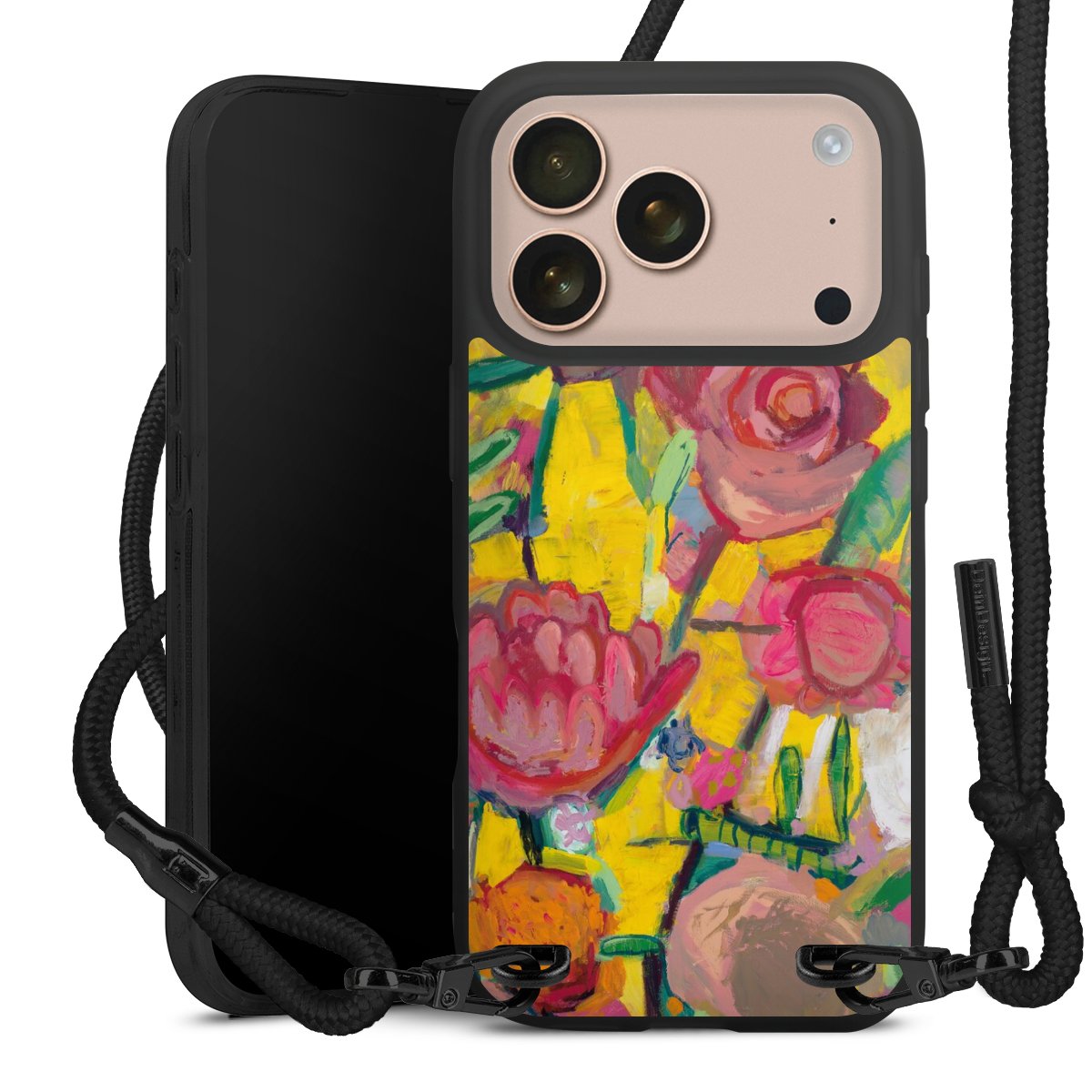 We use the solid direct print process for this phone case, which is why the print area only covers the back and the edge remains unprinted. The case to wear around your neck can be ordered unprinted, fully printed, or partially printed. For your design, either choose one of our exclusive shop motifs or get creative and create your own design, for example with photos and overlays. Design your own personal trend accessory and make an individual statement on the streets!