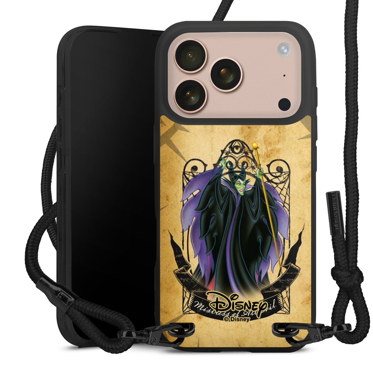 Pure Black: Phone case, fabric strap and metal details in stylish matt black.