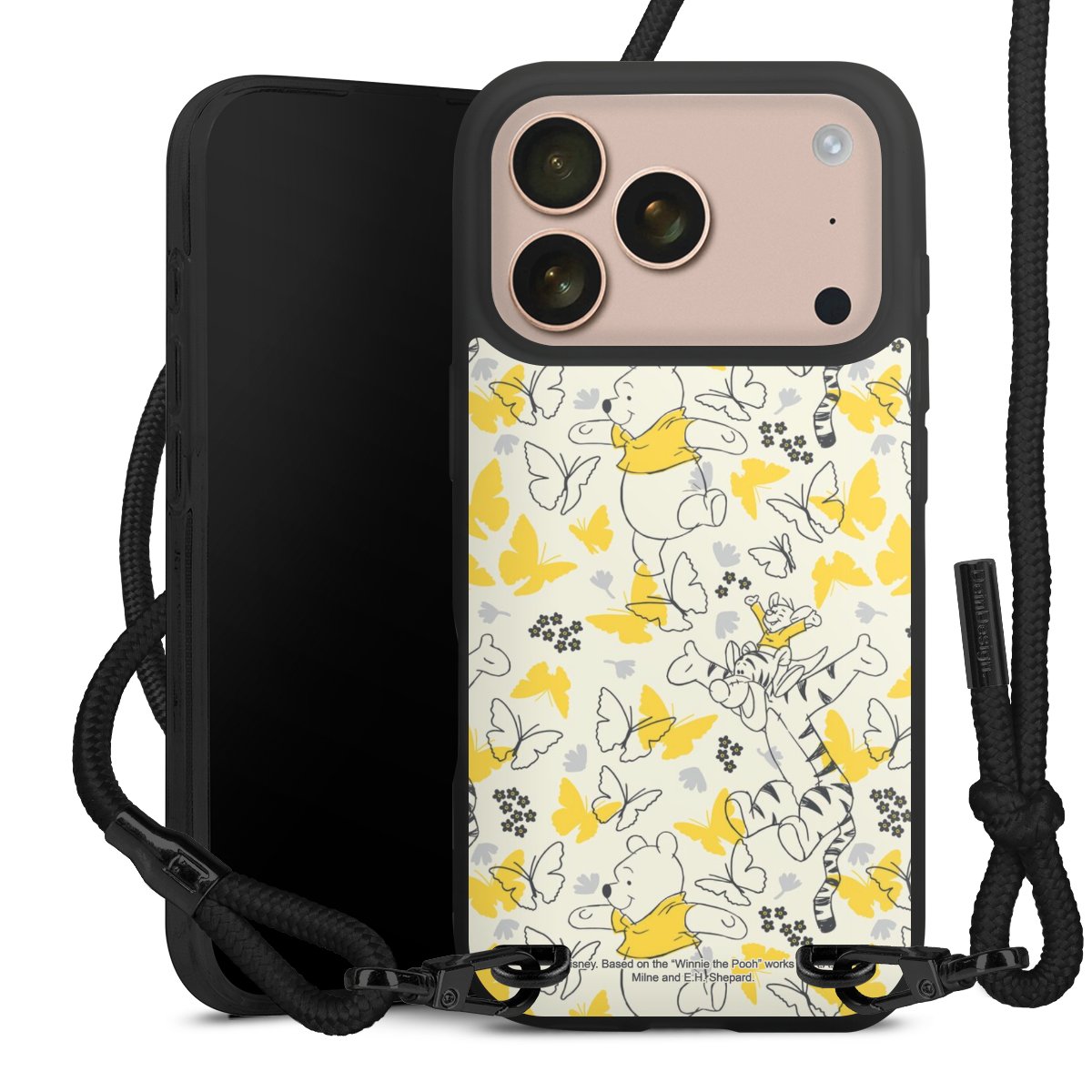 Pure Black: Phone case, fabric strap and metal details in stylish matt black.