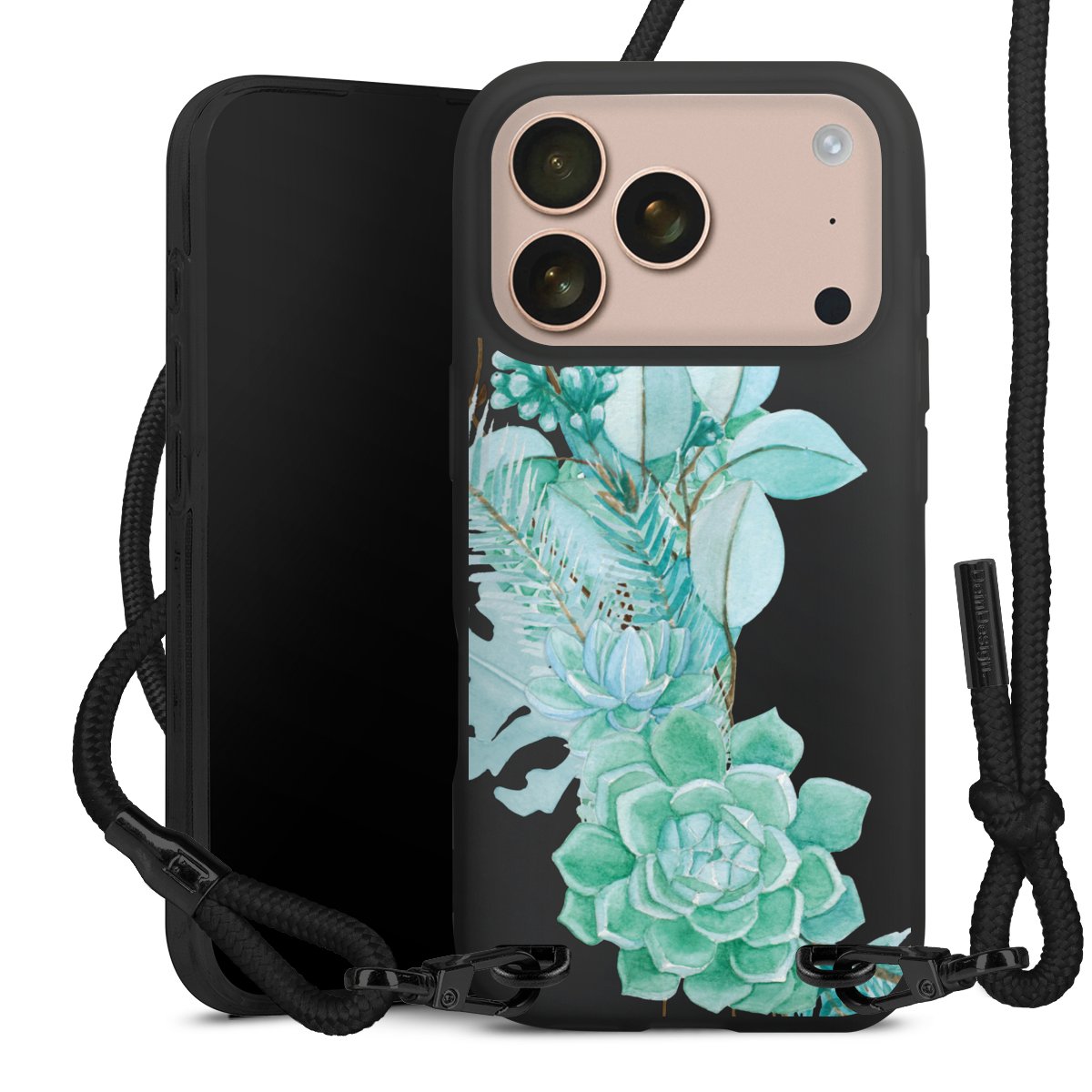 We use the solid direct print process for this phone case, which is why the print area only covers the back and the edge remains unprinted. The case to wear around your neck can be ordered unprinted, fully printed, or partially printed. For your design, either choose one of our exclusive shop motifs or get creative and create your own design, for example with photos and overlays. Design your own personal trend accessory and make an individual statement on the streets!