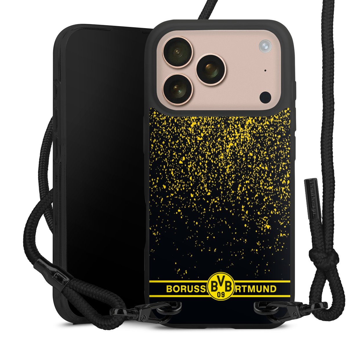 We use the solid direct print process for this phone case, which is why the print area only covers the back and the edge remains unprinted. The case to wear around your neck can be ordered unprinted, fully printed, or partially printed. For your design, either choose one of our exclusive shop motifs or get creative and create your own design, for example with photos and overlays. Design your own personal trend accessory and make an individual statement on the streets!