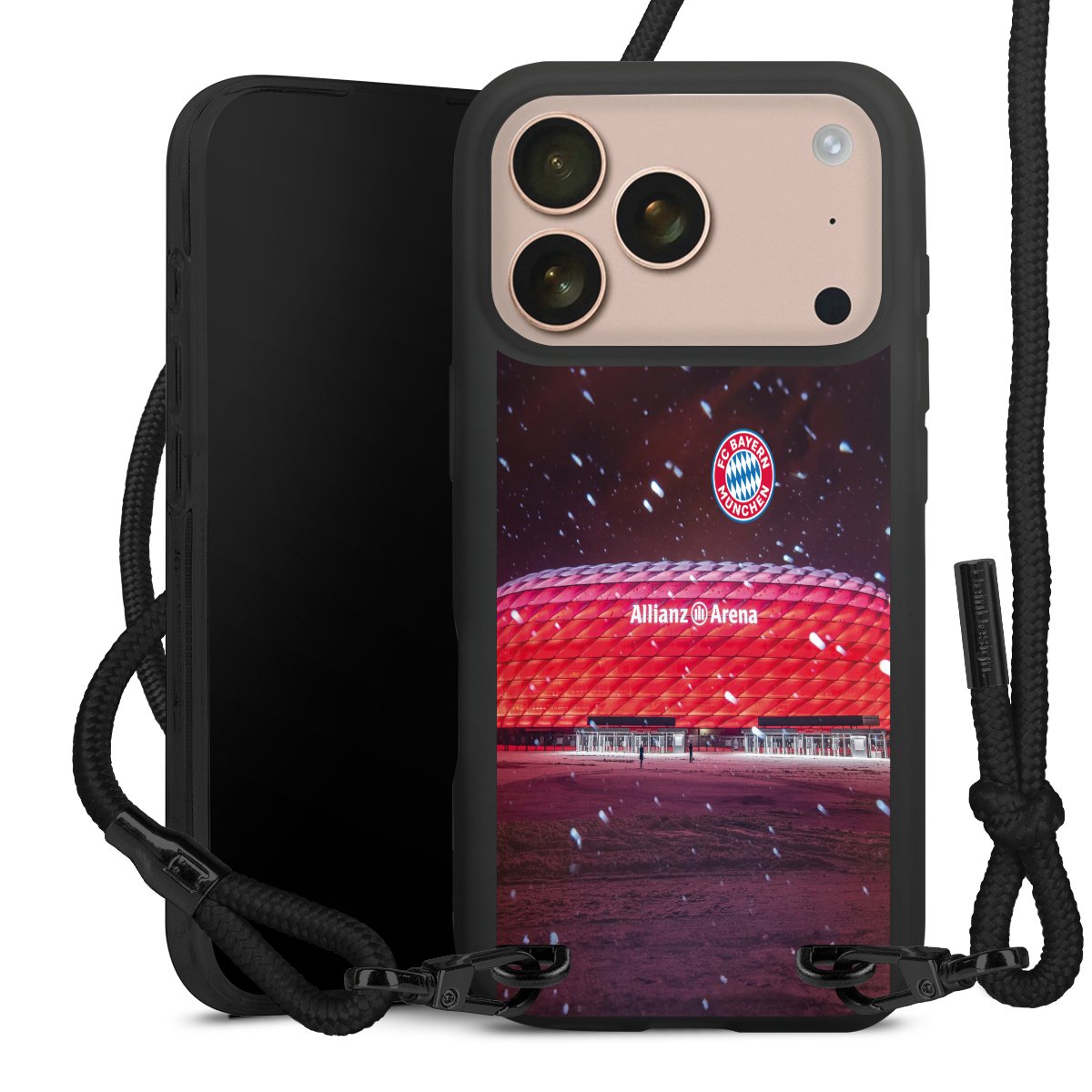 Pure Black: Phone case, fabric strap and metal details in stylish matt black.