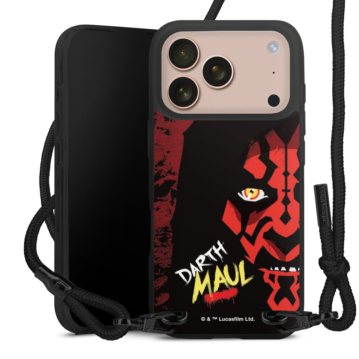 Pure Black: Phone case, fabric strap and metal details in stylish matt black.