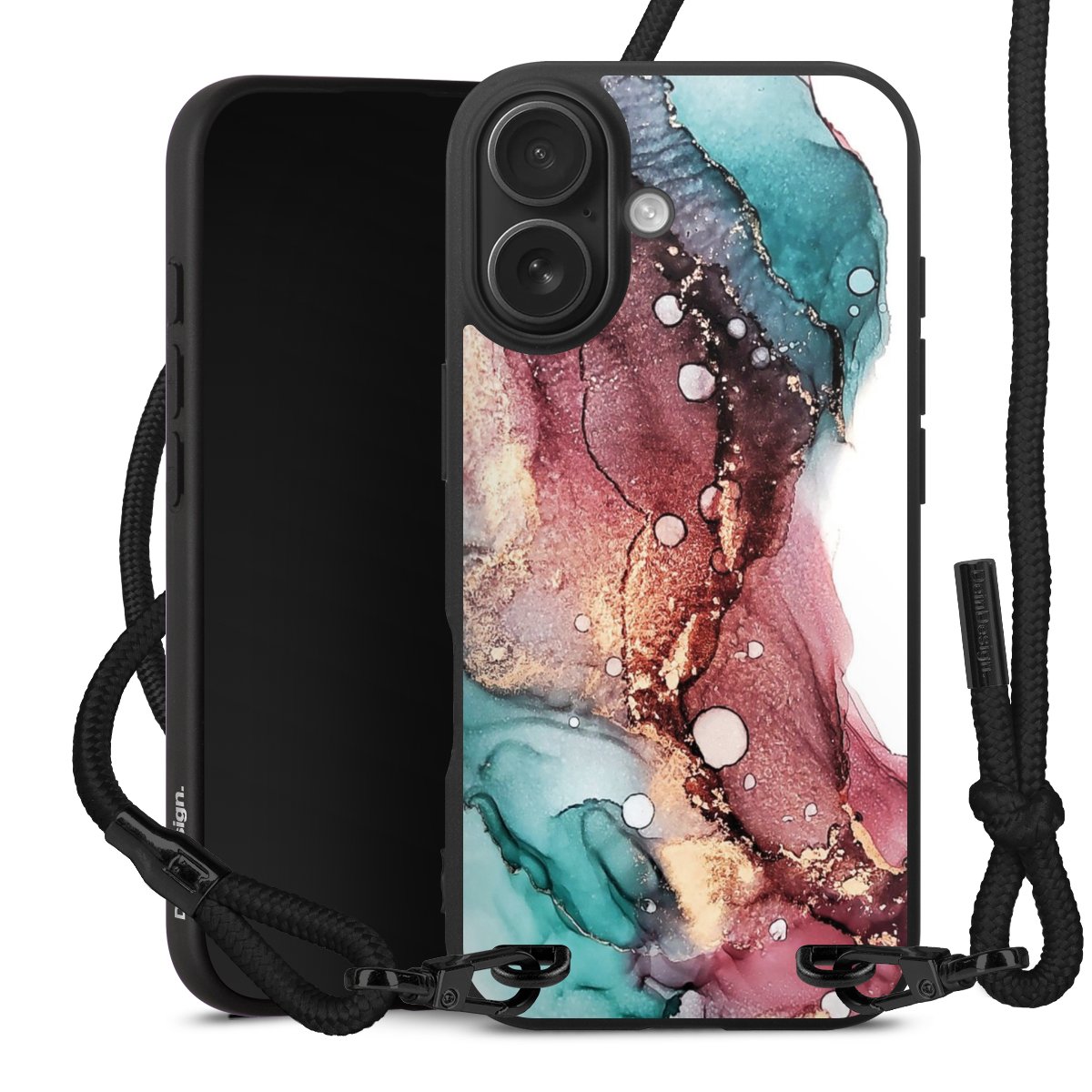 We use the solid direct print process for this phone case, which is why the print area only covers the back and the edge remains unprinted. The case to wear around your neck can be ordered unprinted, fully printed, or partially printed. For your design, either choose one of our exclusive shop motifs or get creative and create your own design, for example with photos and overlays. Design your own personal trend accessory and make an individual statement on the streets!