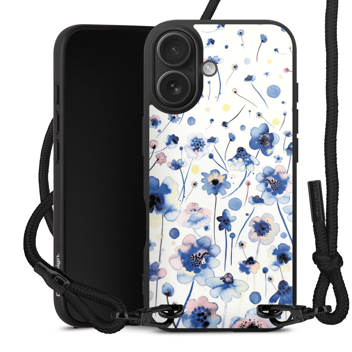 We use the solid direct print process for this phone case, which is why the print area only covers the back and the edge remains unprinted. The case to wear around your neck can be ordered unprinted, fully printed, or partially printed. For your design, either choose one of our exclusive shop motifs or get creative and create your own design, for example with photos and overlays. Design your own personal trend accessory and make an individual statement on the streets!