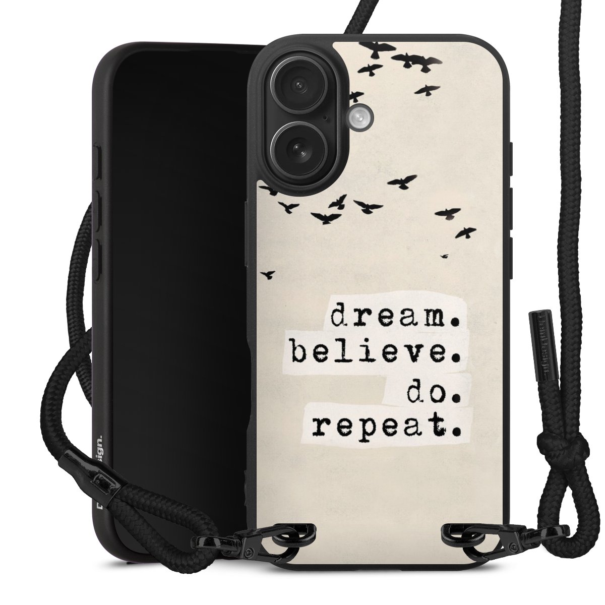 We use the solid direct print process for this phone case, which is why the print area only covers the back and the edge remains unprinted. The case to wear around your neck can be ordered unprinted, fully printed, or partially printed. For your design, either choose one of our exclusive shop motifs or get creative and create your own design, for example with photos and overlays. Design your own personal trend accessory and make an individual statement on the streets!