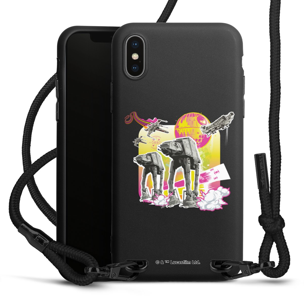 We use the solid direct print process for this phone case, which is why the print area only covers the back and the edge remains unprinted. The case to wear around your neck can be ordered unprinted, fully printed, or partially printed. For your design, either choose one of our exclusive shop motifs or get creative and create your own design, for example with photos and overlays. Design your own personal trend accessory and make an individual statement on the streets!