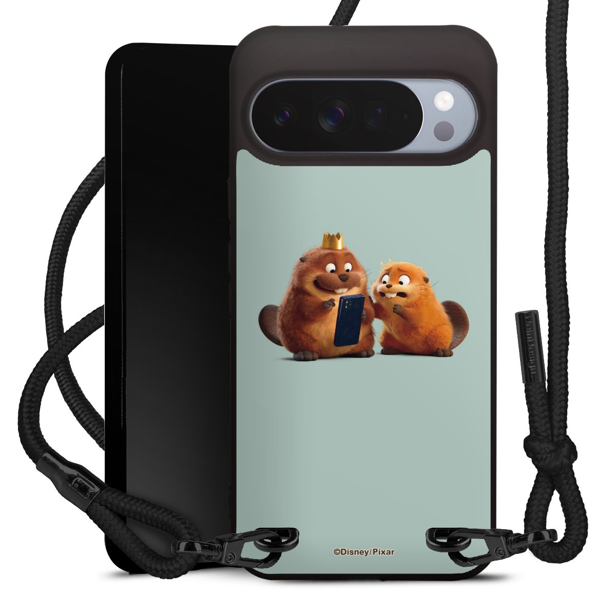 Pure Black: Phone case, fabric strap and metal details in stylish matt black.