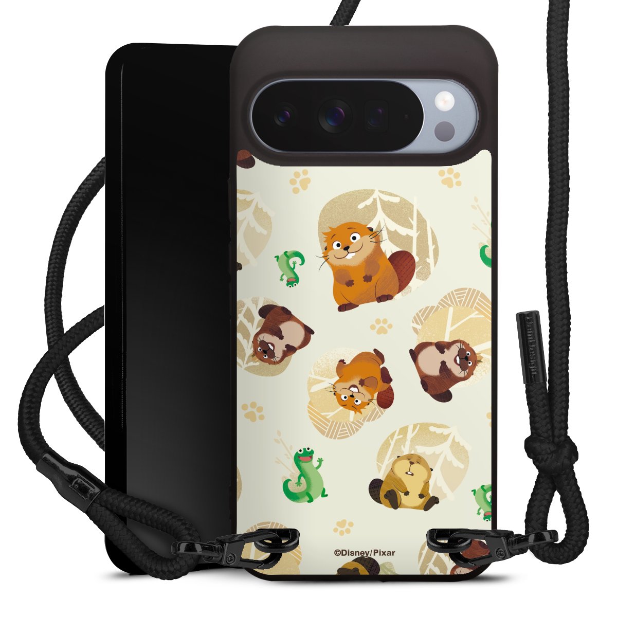 Pure Black: Phone case, fabric strap and metal details in stylish matt black.