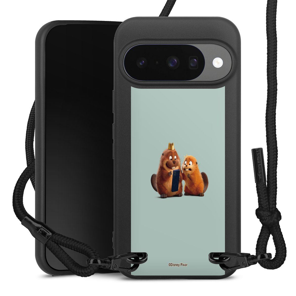 Pure Black: Phone case, fabric strap and metal details in stylish matt black.