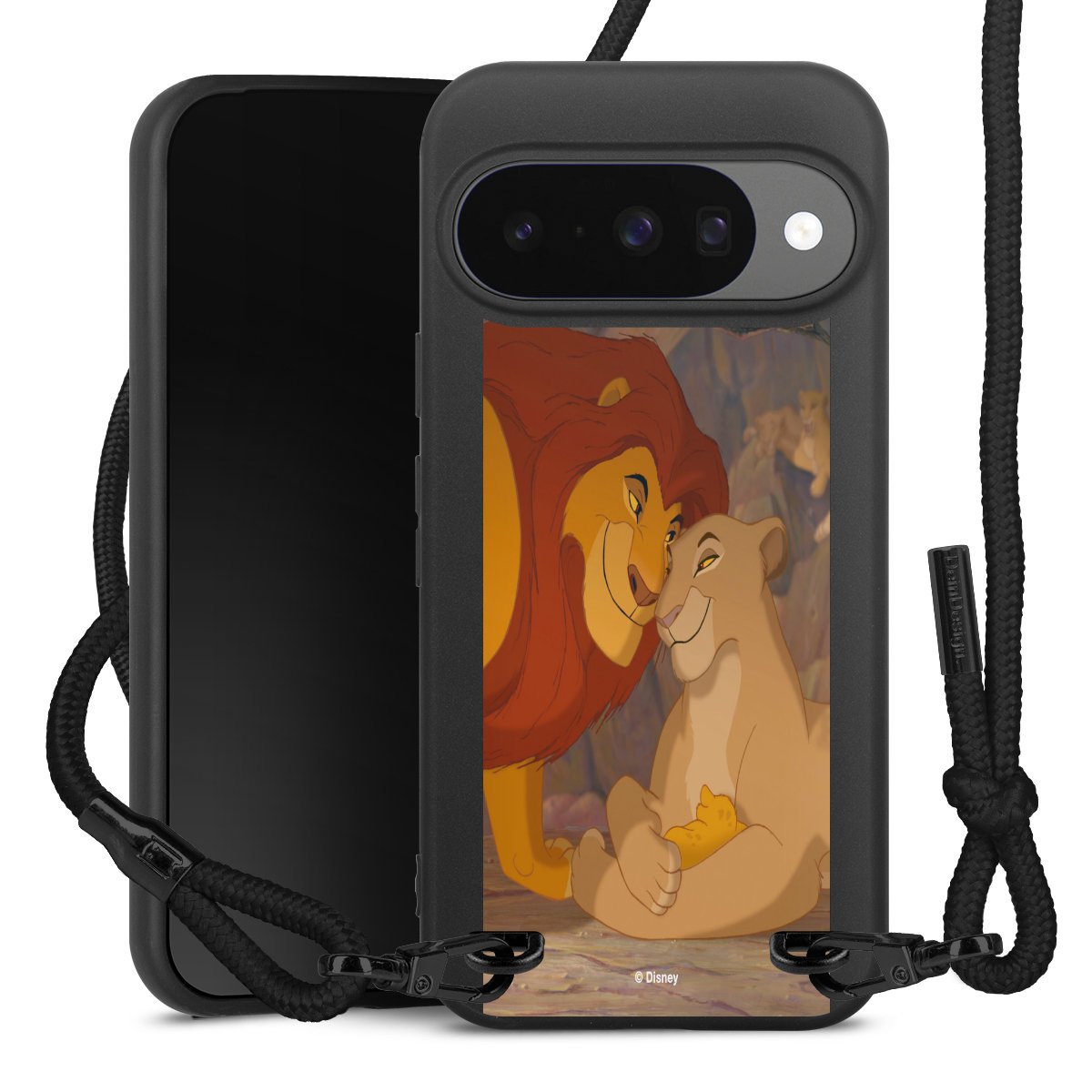 The matt black silicone case is made of flexible TPU (thermoplastic polyurethane) and offers robust protection. The durable, unbreakable material makes the cover flexible and dimensionally stable at the same time. The matte surface makes your design stand out more and is less susceptible to fingerprints and dirt. The stylish trend accessory fits comfortably in the hand and is perfectly complemented by the fabric (polyester) mobile phone strap. The braided fabric strap is approx. 1.70 metres long with a diameter of approx. 0.5 cm. Due to the special knotting technique, the length of the strap can be adjusted by simply pulling it, so that you can adapt it individually to your wishes. The practical case to wear around your neck is available with the fabric strap in black. As a little icing on the cake, we have provided the strap with a chic metal fastener in matt black. The strap is securely fastened to the case with loops made of high-quality genuine leather and press studs. The ends of the fabric strap are covered with metallic end caps and thus protected from fraying.
