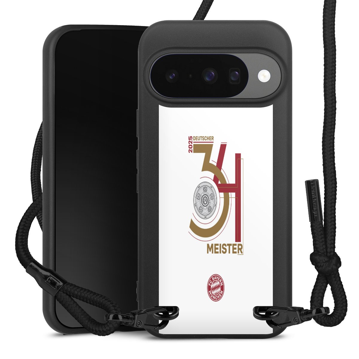 Pure Black: Phone case, fabric strap and metal details in stylish matt black.