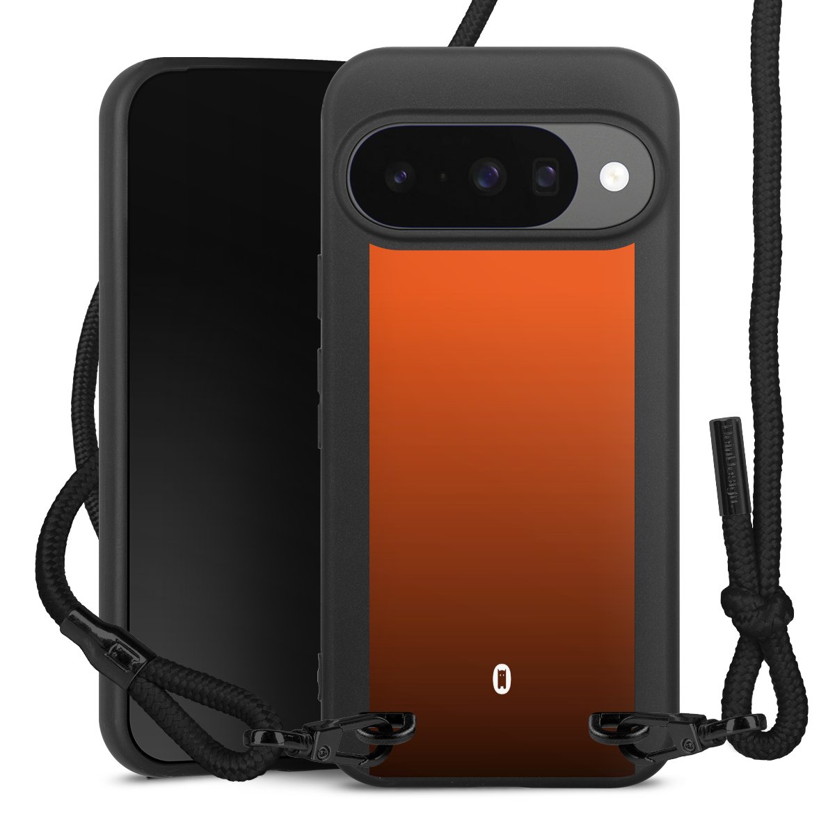 The matt black silicone case is made of flexible TPU (thermoplastic polyurethane) and offers robust protection. The durable, unbreakable material makes the cover flexible and dimensionally stable at the same time. The matte surface makes your design stand out more and is less susceptible to fingerprints and dirt. The stylish trend accessory fits comfortably in the hand and is perfectly complemented by the fabric (polyester) mobile phone strap. The braided fabric strap is approx. 1.70 metres long with a diameter of approx. 0.5 cm. Due to the special knotting technique, the length of the strap can be adjusted by simply pulling it, so that you can adapt it individually to your wishes. The practical case to wear around your neck is available with the fabric strap in black. As a little icing on the cake, we have provided the strap with a chic metal fastener in matt black. The strap is securely fastened to the case with loops made of high-quality genuine leather and press studs. The ends of the fabric strap are covered with metallic end caps and thus protected from fraying.