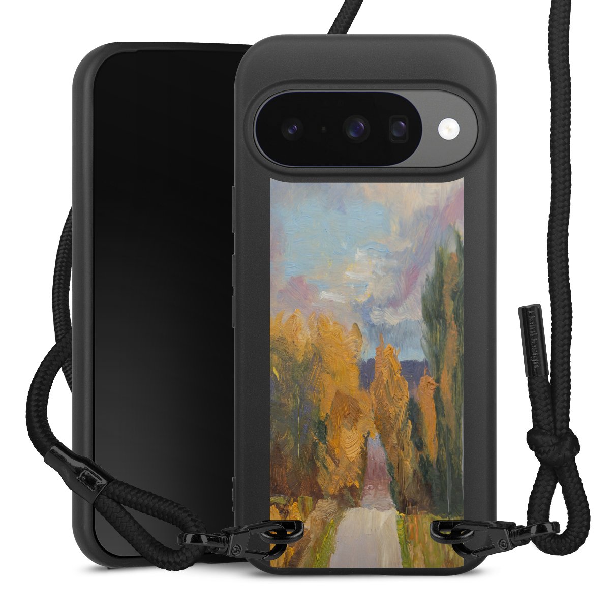 We use the solid direct print process for this phone case, which is why the print area only covers the back and the edge remains unprinted. The case to wear around your neck can be ordered unprinted, fully printed, or partially printed. For your design, either choose one of our exclusive shop motifs or get creative and create your own design, for example with photos and overlays. Design your own personal trend accessory and make an individual statement on the streets!