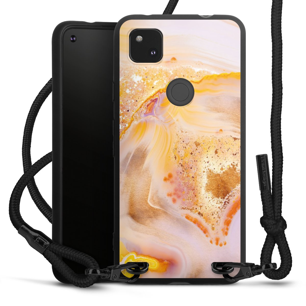 We use the solid direct print process for this phone case, which is why the print area only covers the back and the edge remains unprinted. The case to wear around your neck can be ordered unprinted, fully printed, or partially printed. For your design, either choose one of our exclusive shop motifs or get creative and create your own design, for example with photos and overlays. Design your own personal trend accessory and make an individual statement on the streets!