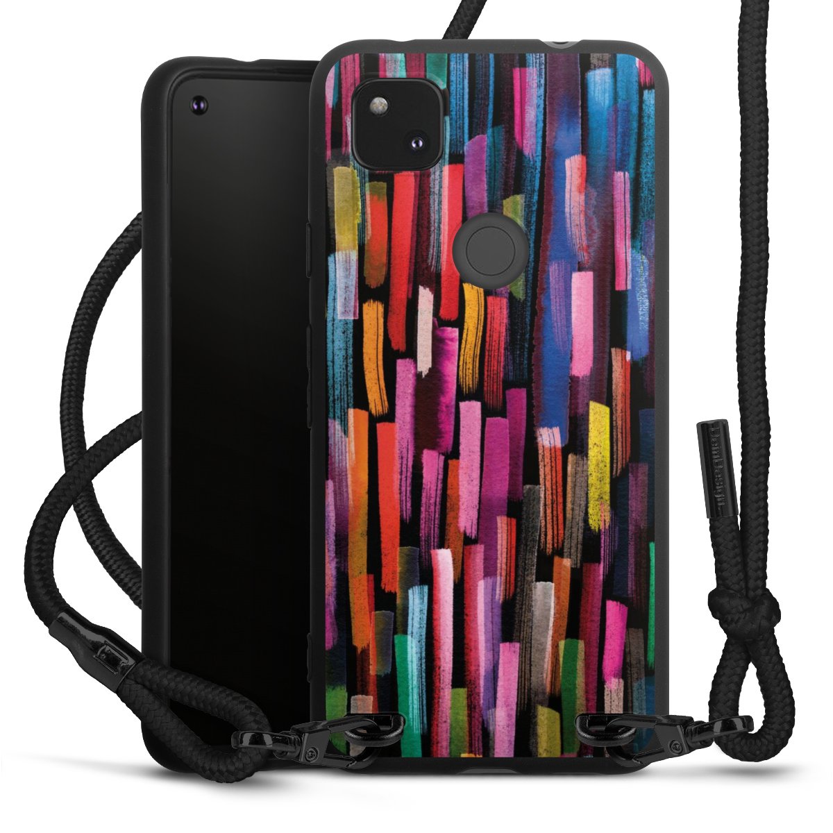 We use the solid direct print process for this phone case, which is why the print area only covers the back and the edge remains unprinted. The case to wear around your neck can be ordered unprinted, fully printed, or partially printed. For your design, either choose one of our exclusive shop motifs or get creative and create your own design, for example with photos and overlays. Design your own personal trend accessory and make an individual statement on the streets!