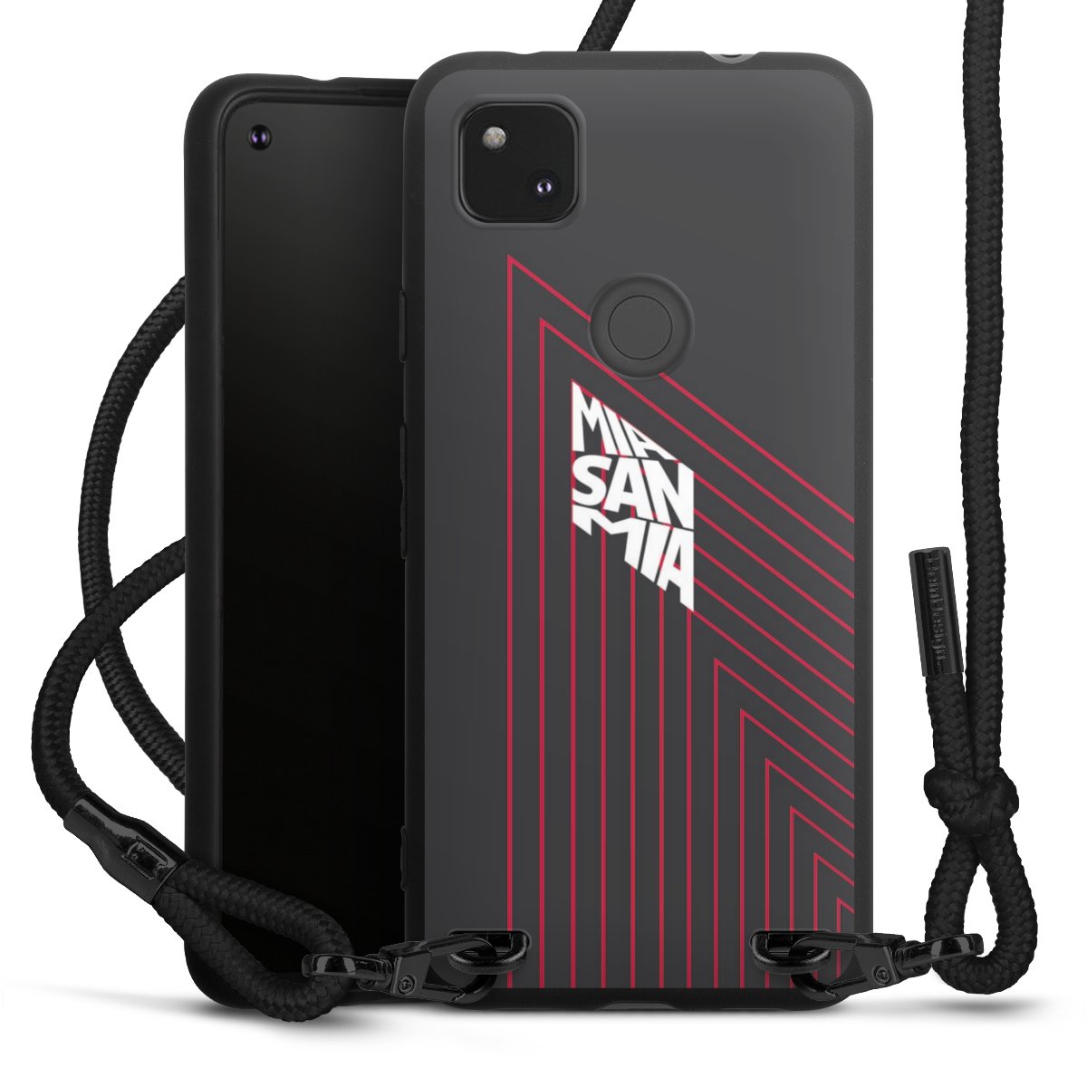 Pure Black: Phone case, fabric strap and metal details in stylish matt black.