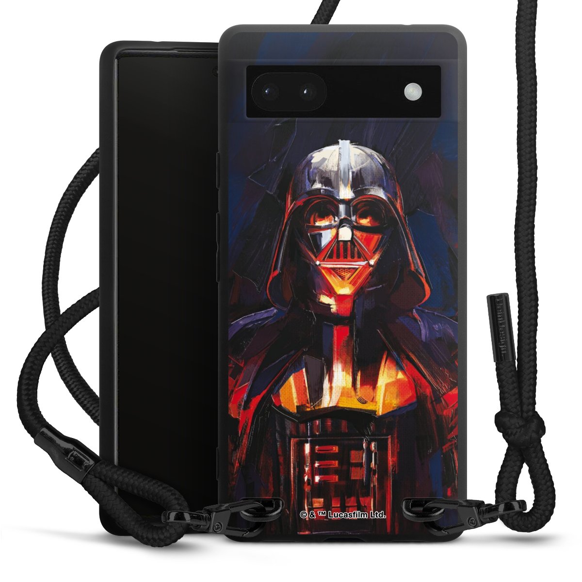 The matt black silicone case is made of flexible TPU (thermoplastic polyurethane) and offers robust protection. The durable, unbreakable material makes the cover flexible and dimensionally stable at the same time. The matte surface makes your design stand out more and is less susceptible to fingerprints and dirt. The stylish trend accessory fits comfortably in the hand and is perfectly complemented by the fabric (polyester) mobile phone strap. The braided fabric strap is approx. 1.70 metres long with a diameter of approx. 0.5 cm. Due to the special knotting technique, the length of the strap can be adjusted by simply pulling it, so that you can adapt it individually to your wishes. The practical case to wear around your neck is available with the fabric strap in black. As a little icing on the cake, we have provided the strap with a chic metal fastener in matt black. The strap is securely fastened to the case with loops made of high-quality genuine leather and press studs. The ends of the fabric strap are covered with metallic end caps and thus protected from fraying.