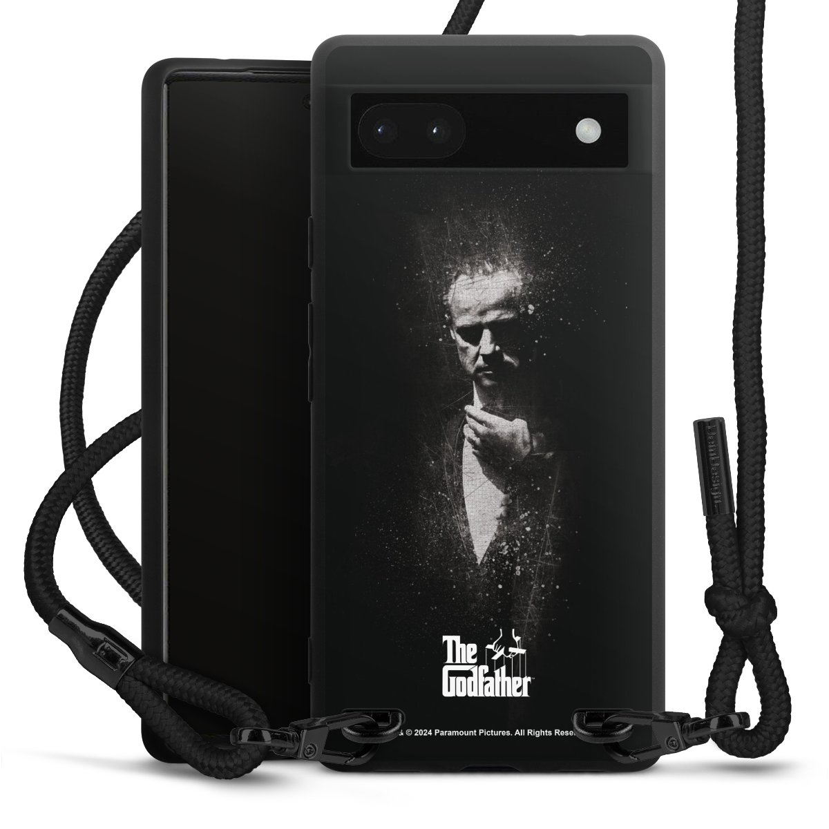 The matt black silicone case is made of flexible TPU (thermoplastic polyurethane) and offers robust protection. The durable, unbreakable material makes the cover flexible and dimensionally stable at the same time. The matte surface makes your design stand out more and is less susceptible to fingerprints and dirt. The stylish trend accessory fits comfortably in the hand and is perfectly complemented by the fabric (polyester) mobile phone strap. The braided fabric strap is approx. 1.70 metres long with a diameter of approx. 0.5 cm. Due to the special knotting technique, the length of the strap can be adjusted by simply pulling it, so that you can adapt it individually to your wishes. The practical case to wear around your neck is available with the fabric strap in black. As a little icing on the cake, we have provided the strap with a chic metal fastener in matt black. The strap is securely fastened to the case with loops made of high-quality genuine leather and press studs. The ends of the fabric strap are covered with metallic end caps and thus protected from fraying.