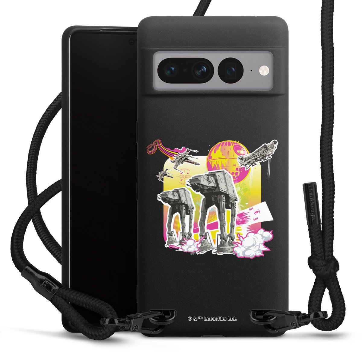 We use the solid direct print process for this phone case, which is why the print area only covers the back and the edge remains unprinted. The case to wear around your neck can be ordered unprinted, fully printed, or partially printed. For your design, either choose one of our exclusive shop motifs or get creative and create your own design, for example with photos and overlays. Design your own personal trend accessory and make an individual statement on the streets!