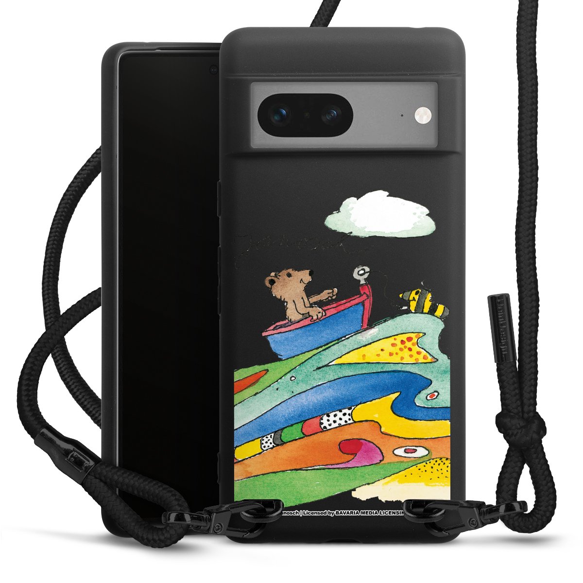 We use the solid direct print process for this phone case, which is why the print area only covers the back and the edge remains unprinted. The case to wear around your neck can be ordered unprinted, fully printed, or partially printed. For your design, either choose one of our exclusive shop motifs or get creative and create your own design, for example with photos and overlays. Design your own personal trend accessory and make an individual statement on the streets!
