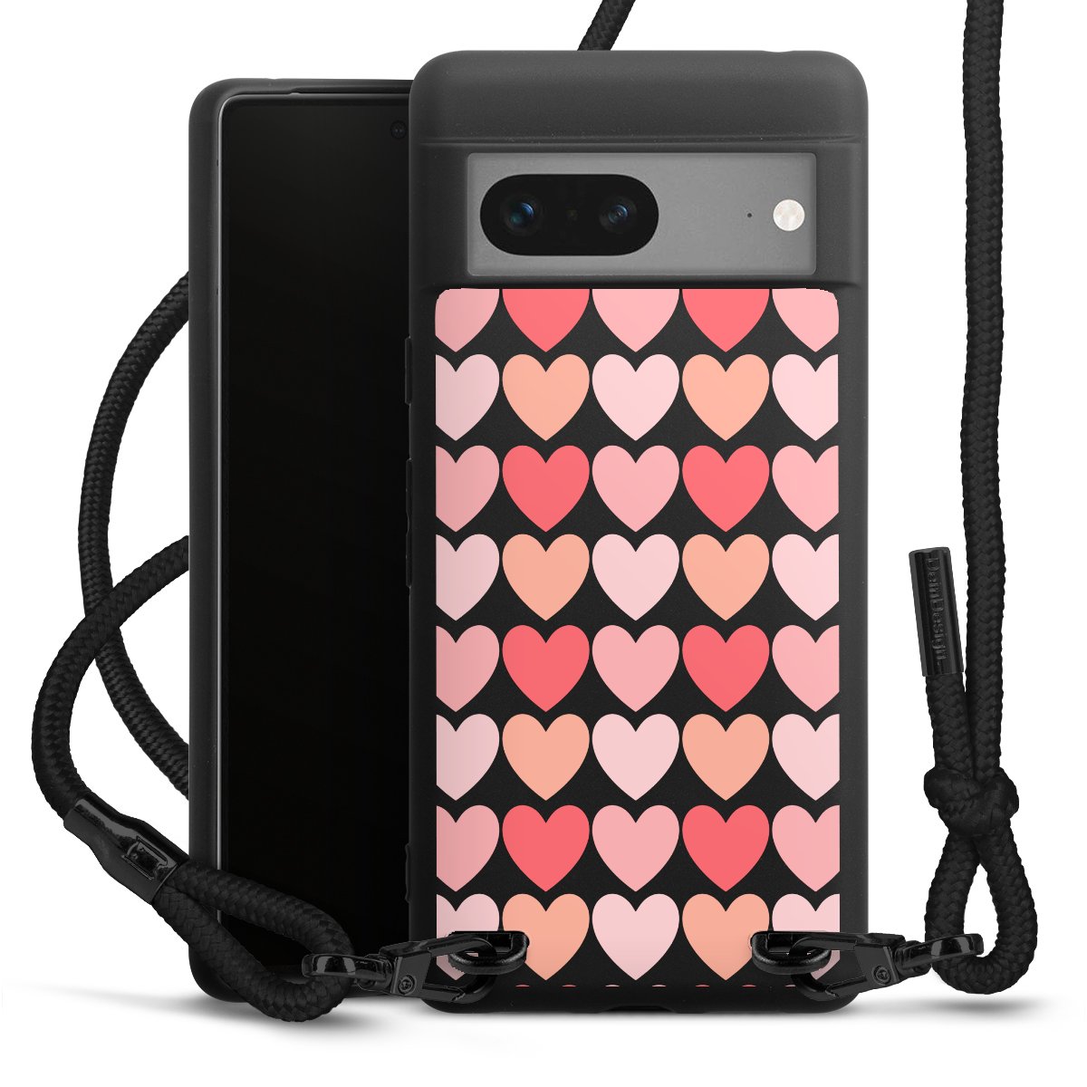 We use the solid direct print process for this phone case, which is why the print area only covers the back and the edge remains unprinted. The case to wear around your neck can be ordered unprinted, fully printed, or partially printed. For your design, either choose one of our exclusive shop motifs or get creative and create your own design, for example with photos and overlays. Design your own personal trend accessory and make an individual statement on the streets!