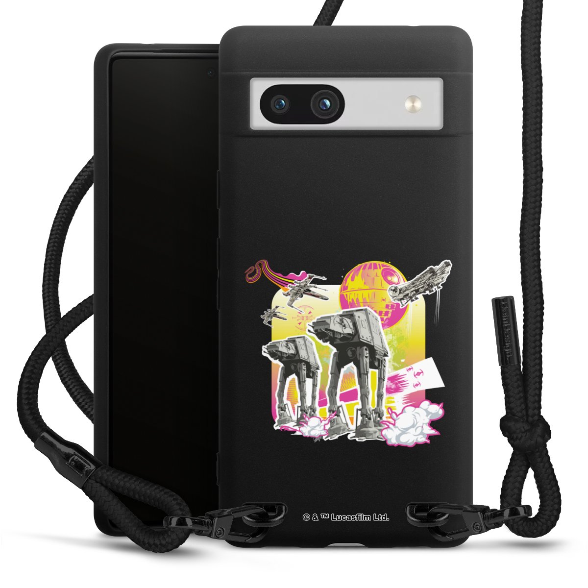 We use the solid direct print process for this phone case, which is why the print area only covers the back and the edge remains unprinted. The case to wear around your neck can be ordered unprinted, fully printed, or partially printed. For your design, either choose one of our exclusive shop motifs or get creative and create your own design, for example with photos and overlays. Design your own personal trend accessory and make an individual statement on the streets!