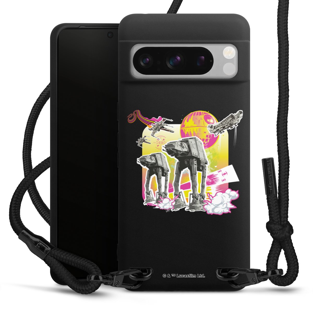 We use the solid direct print process for this phone case, which is why the print area only covers the back and the edge remains unprinted. The case to wear around your neck can be ordered unprinted, fully printed, or partially printed. For your design, either choose one of our exclusive shop motifs or get creative and create your own design, for example with photos and overlays. Design your own personal trend accessory and make an individual statement on the streets!
