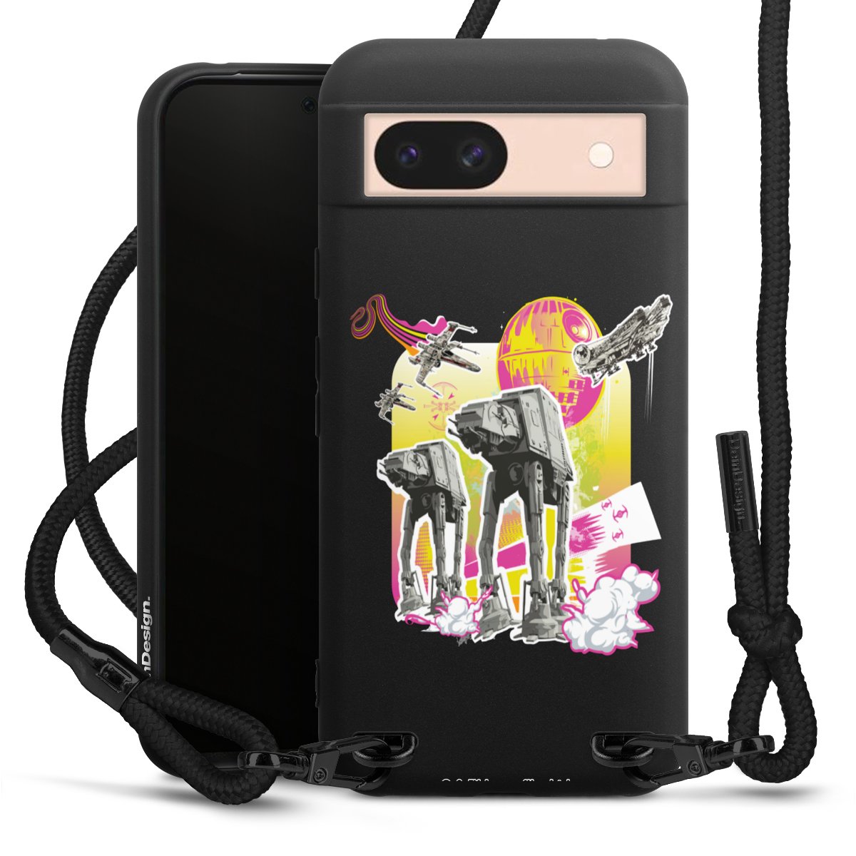 We use the solid direct print process for this phone case, which is why the print area only covers the back and the edge remains unprinted. The case to wear around your neck can be ordered unprinted, fully printed, or partially printed. For your design, either choose one of our exclusive shop motifs or get creative and create your own design, for example with photos and overlays. Design your own personal trend accessory and make an individual statement on the streets!