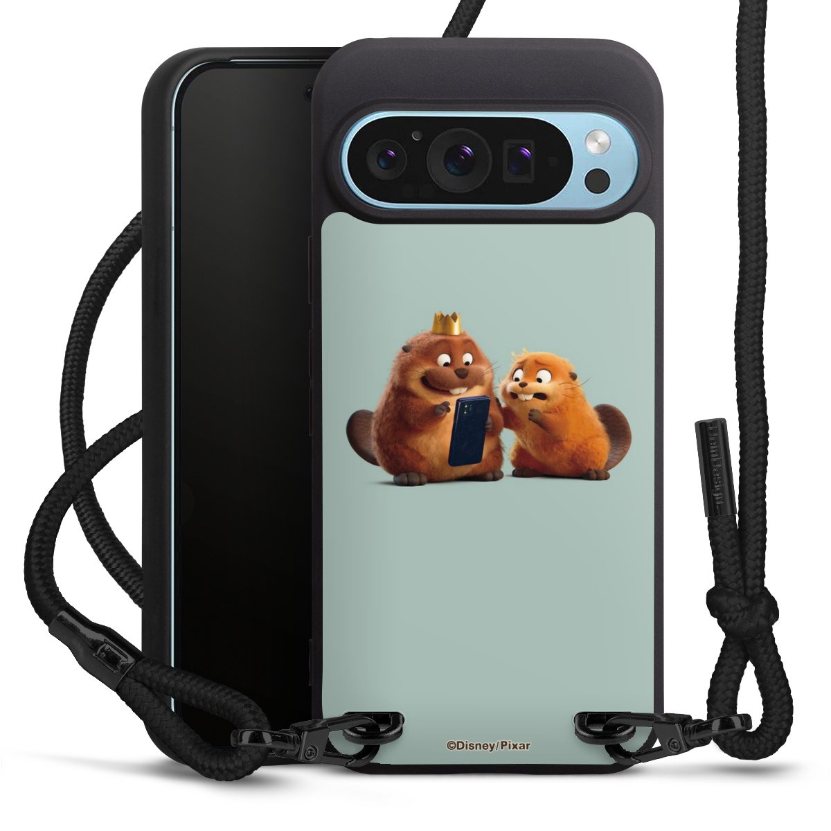 Pure Black: Phone case, fabric strap and metal details in stylish matt black.