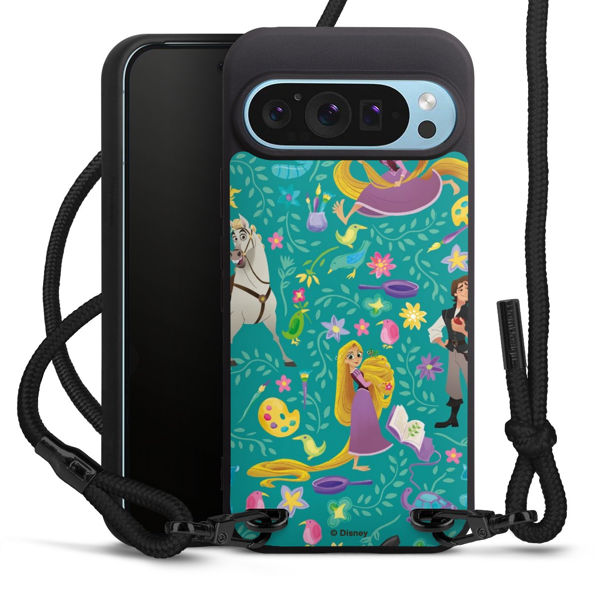 The matt black silicone case is made of flexible TPU (thermoplastic polyurethane) and offers robust protection. The durable, unbreakable material makes the cover flexible and dimensionally stable at the same time. The matte surface makes your design stand out more and is less susceptible to fingerprints and dirt. The stylish trend accessory fits comfortably in the hand and is perfectly complemented by the fabric (polyester) mobile phone strap. The braided fabric strap is approx. 1.70 metres long with a diameter of approx. 0.5 cm. Due to the special knotting technique, the length of the strap can be adjusted by simply pulling it, so that you can adapt it individually to your wishes. The practical case to wear around your neck is available with the fabric strap in black. As a little icing on the cake, we have provided the strap with a chic metal fastener in matt black. The strap is securely fastened to the case with loops made of high-quality genuine leather and press studs. The ends of the fabric strap are covered with metallic end caps and thus protected from fraying.