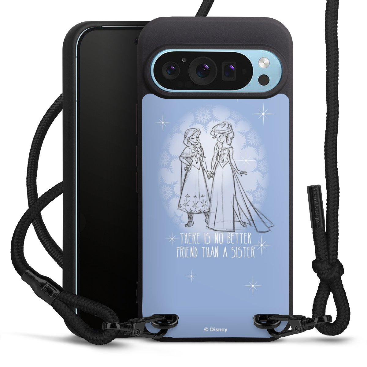 Pure Black: Phone case, fabric strap and metal details in stylish matt black.