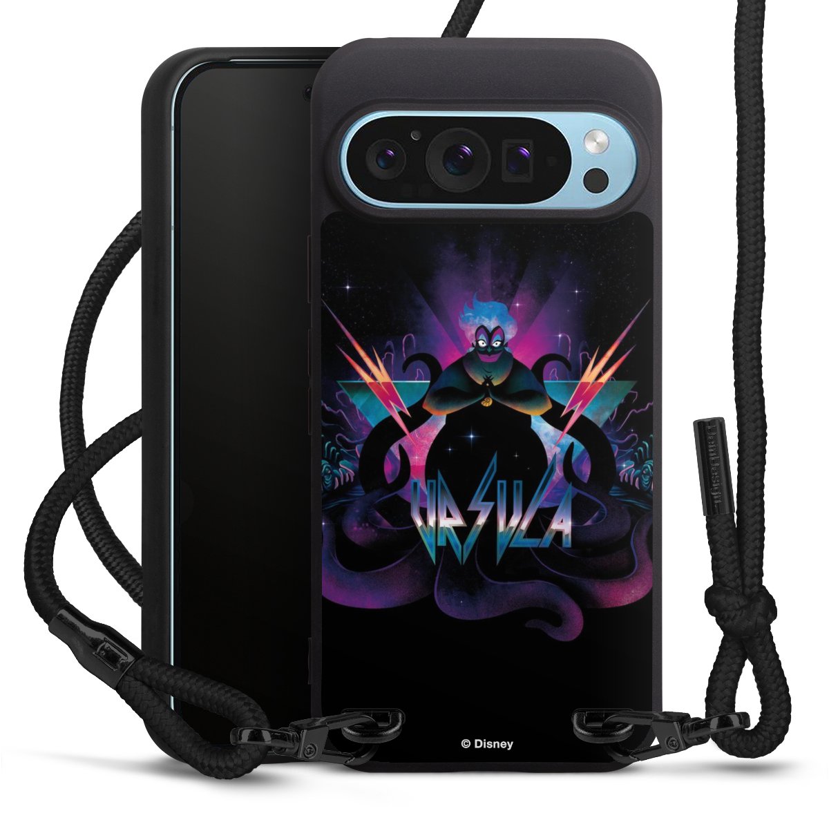 Pure Black: Phone case, fabric strap and metal details in stylish matt black.