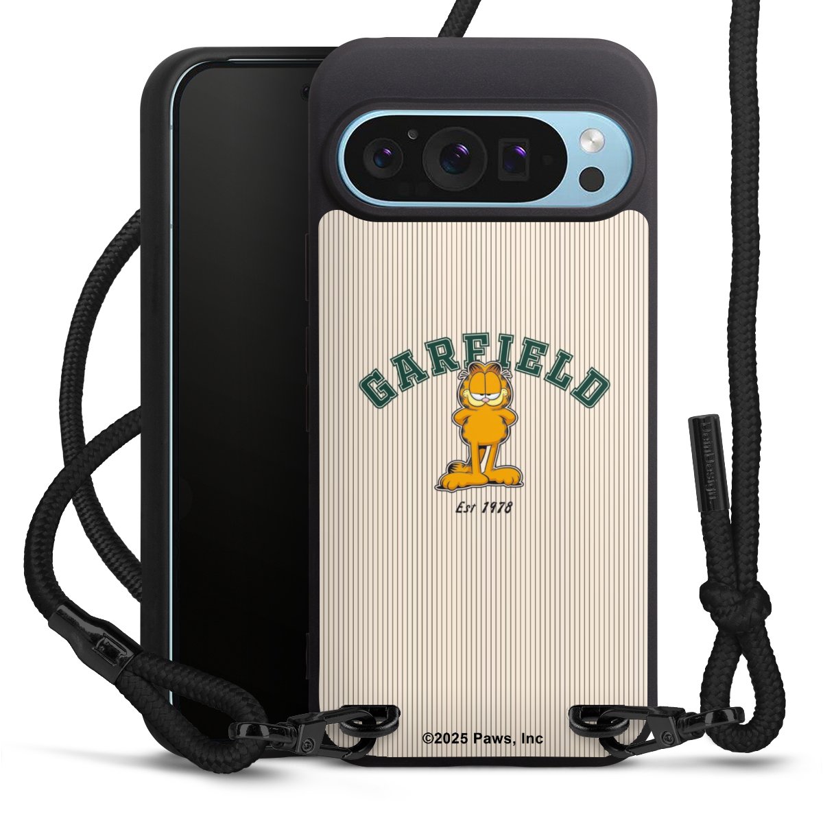 Pure Black: Phone case, fabric strap and metal details in stylish matt black.