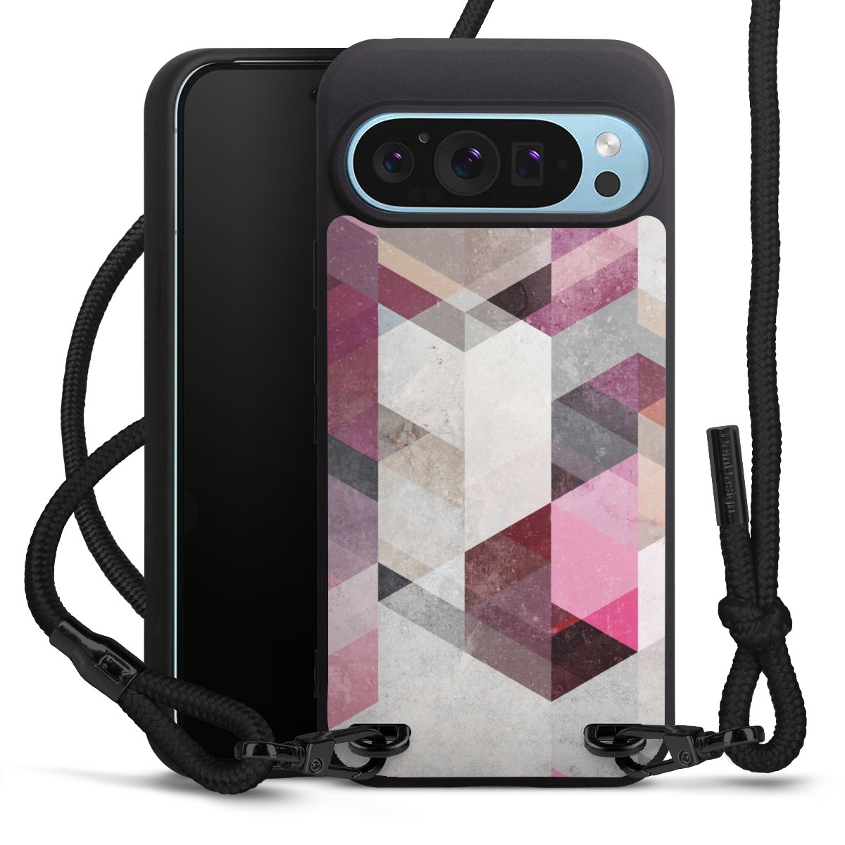Pure Black: Phone case, fabric strap and metal details in stylish matt black.